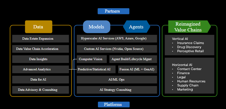 Our strategy is to move away from the foundational enterprise software paradigm of databases, algorithms and applications serving industry value chains powered by human employees, and switch to a paradigm of Data, Models and Agents used to serving reimagined value chains where humans are in the loop.