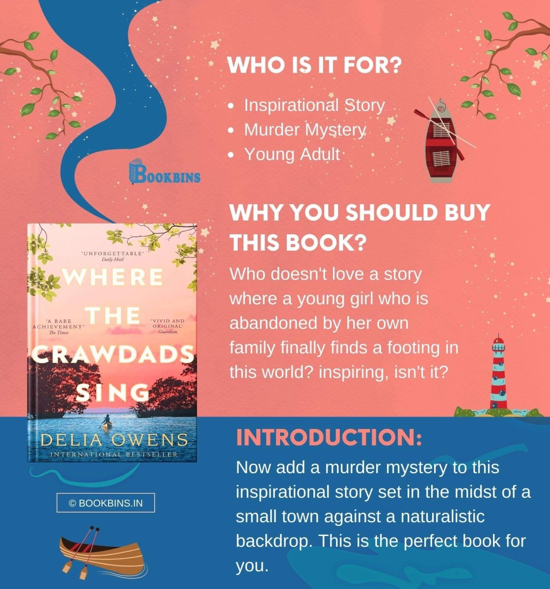 Where the Crawdads Sing is a captivating novel by Delia Owens that blends mystery, romance, and a powerful coming-of-age story set against the backdrop of the wild North Carolina marshlands. The story follows Kya Clark, the mysterious “Marsh Girl,” who survives alone in the wilderness after being abandoned as a child. Shunned by society, she finds solace in nature—but when a local man is found dead, Kya becomes the prime suspect in a murder investigation.